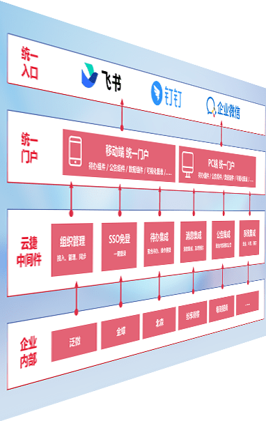 对协作平台提供支持服务,,支持企业应用与协作平台对接,,,包含组织同步、、、消息集成、、待办集成等。。。支持目前主流的协作平台:钉钉、、、企微和飞书。。